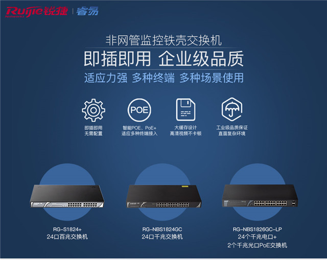 銳捷RG-NBS1826GC-LP 企業(yè)級(jí)24口千兆POE+監(jiān)控?cái)z像頭AP供電交換機(jī)