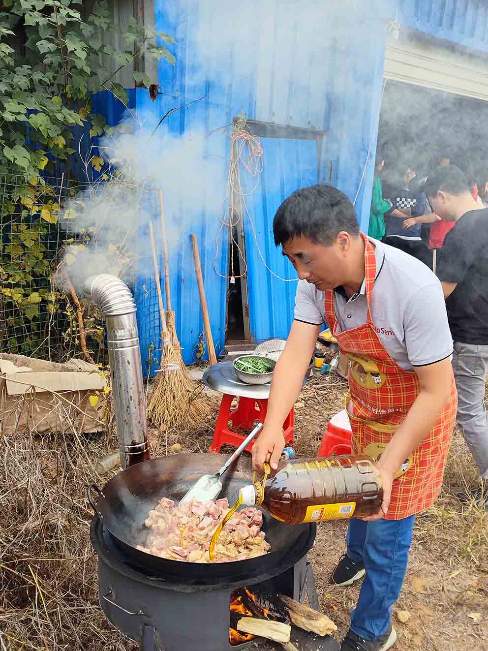 總經(jīng)理也親自下廚,制作紅燒排骨等大菜,管工的同時也管起員工的“胃”