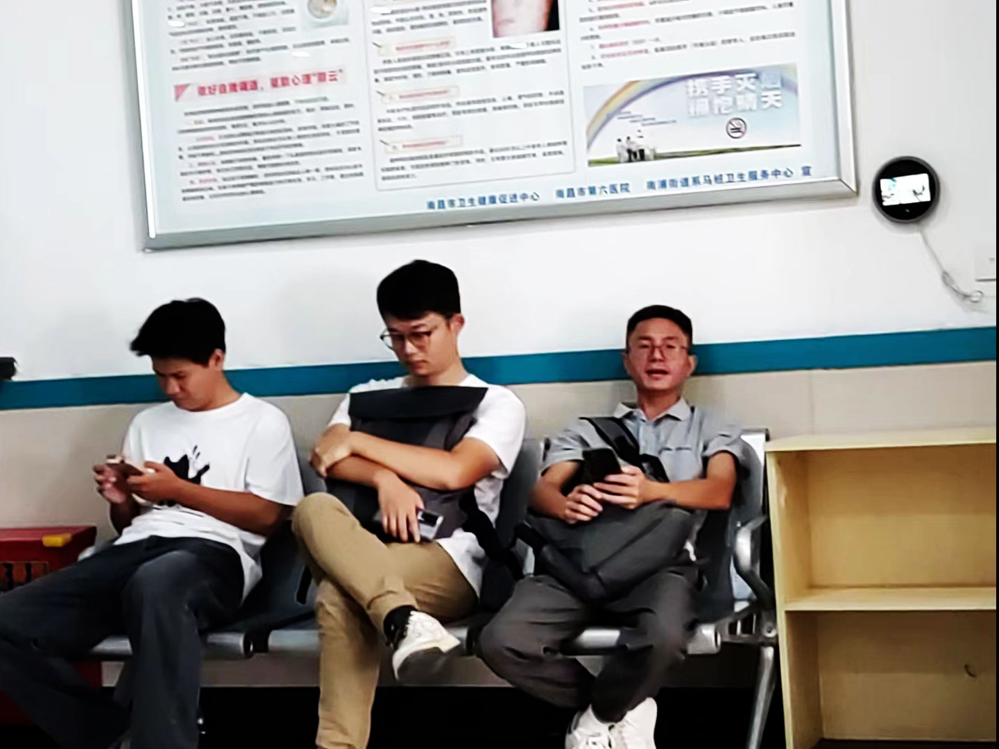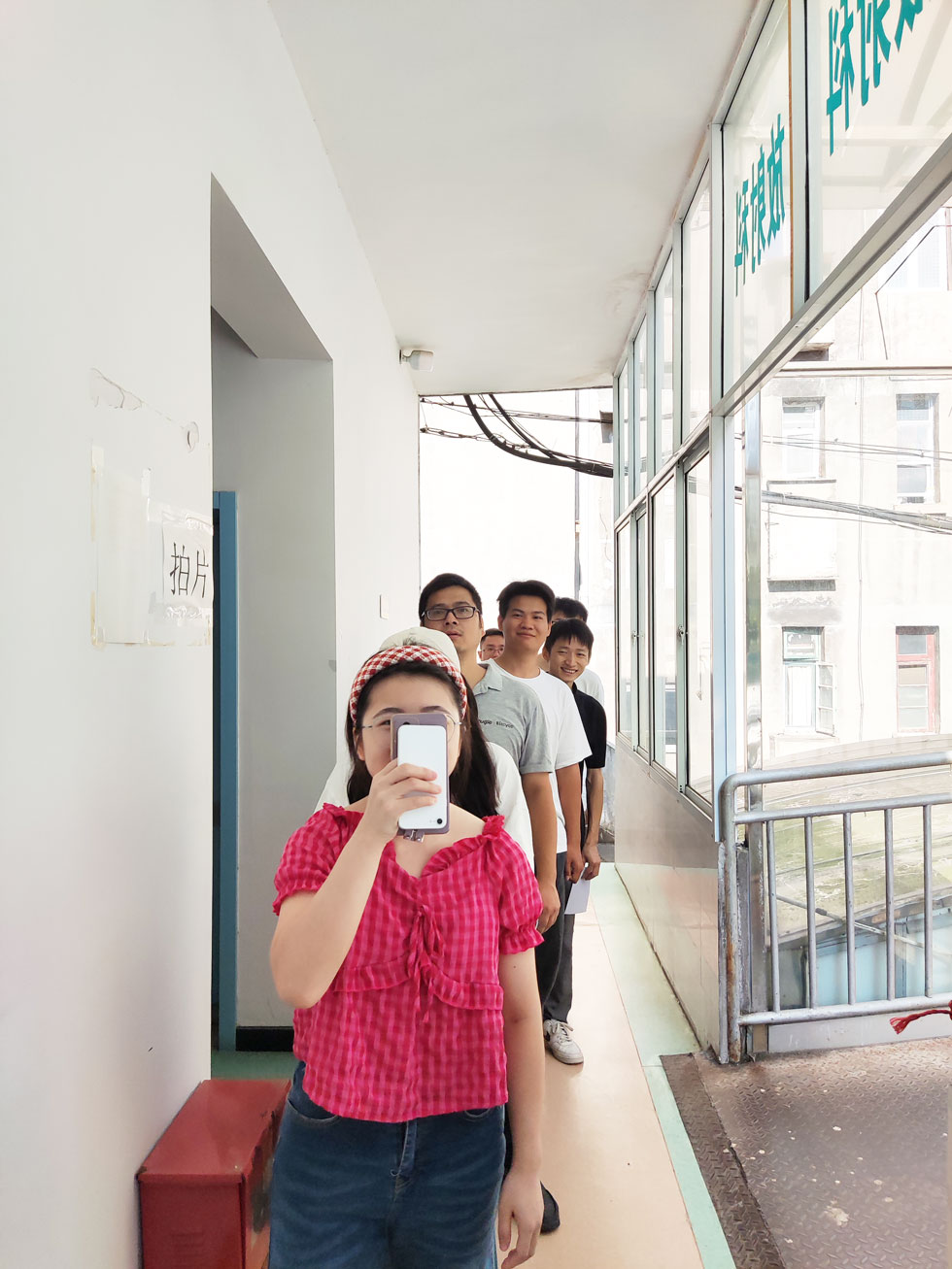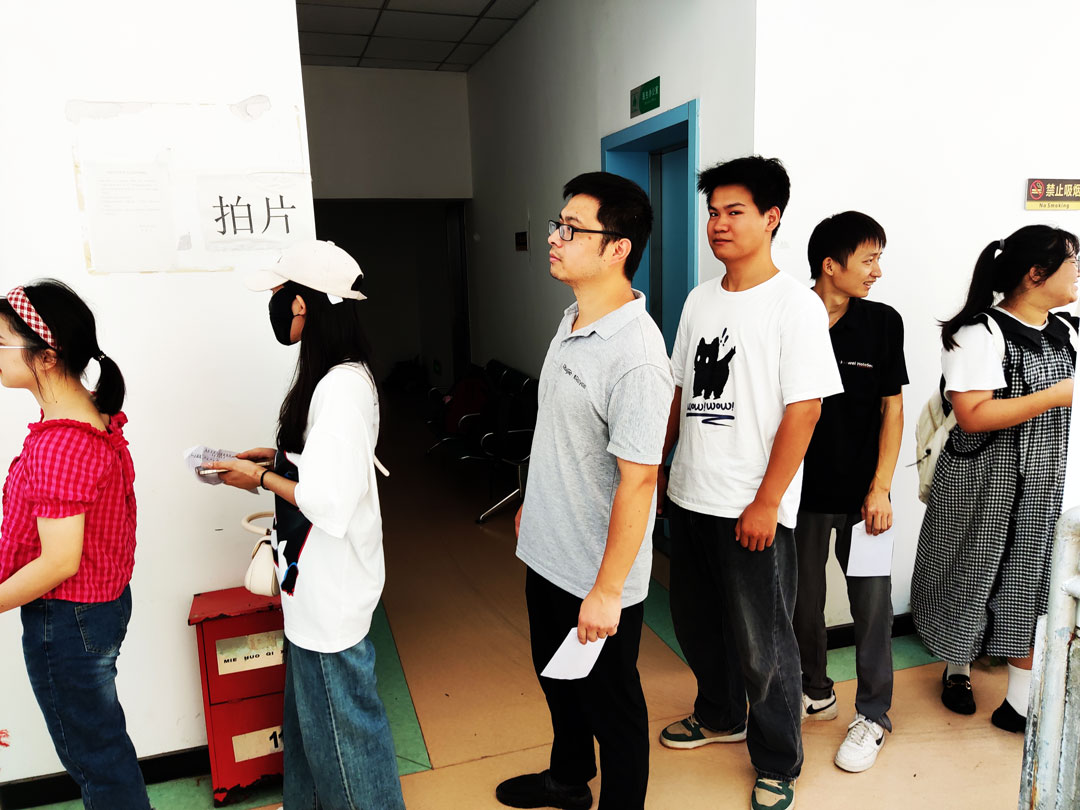體檢現(xiàn)場大家有序排隊(duì),領(lǐng)取體檢表格。