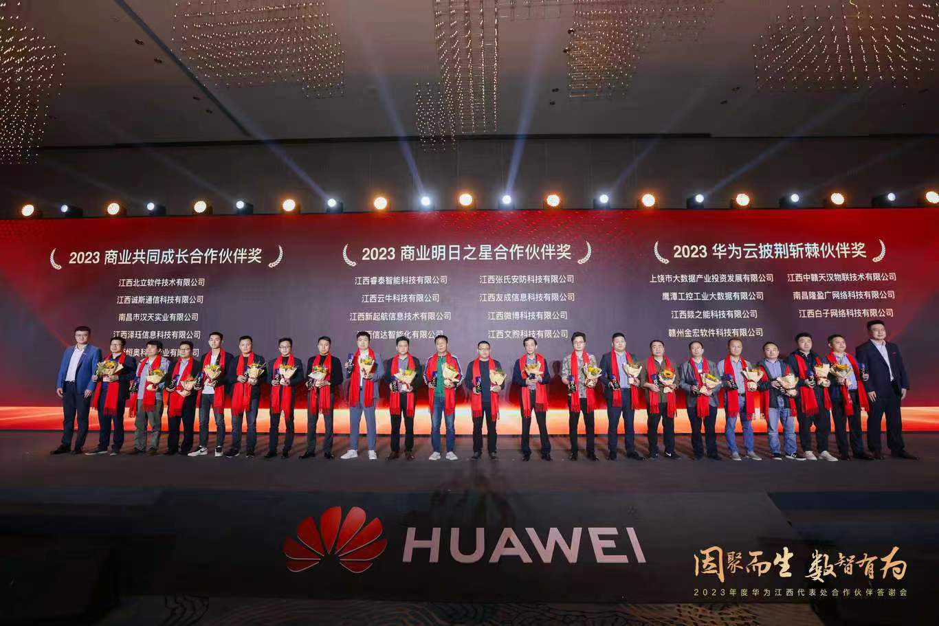 作為華為江西代表處的合作伙伴,南昌市漢天實業(yè)受邀出席,榮獲“2023商業(yè)共同成長合作伙伴獎”和“新銳合作伙伴獎”兩個獎項。