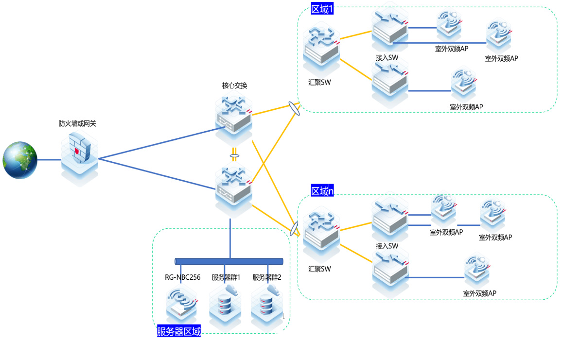 景區(qū)WIFI具有客流密集、室外環(huán)境復(fù)雜等特點,為滿足景區(qū)的上述需求,特采用室外WIFI6AP部署;所有AP均采用硬件無線控制進行統(tǒng)一管理。wifi6具有下述特點: