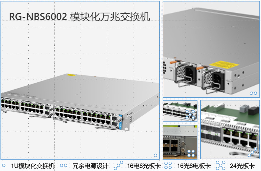 RG-NBS6002是銳捷最新發(fā)布的一款模塊化1U交換機,具有以下特點: